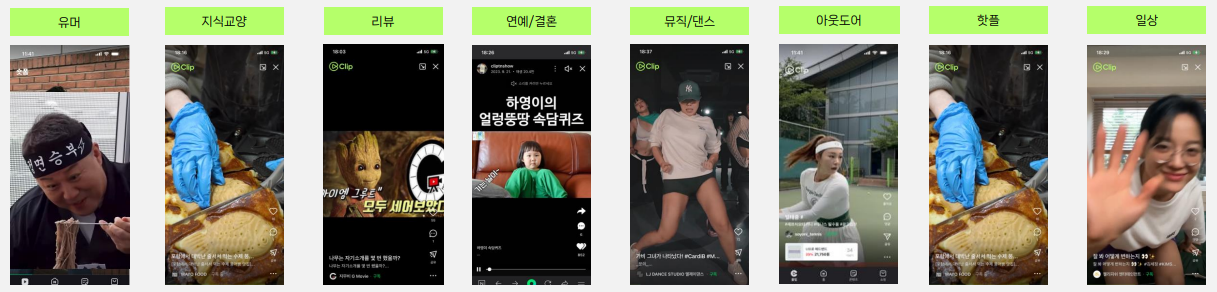 또한 유튜브 쇼츠, 인스타그램 릴스 등과 같이 장르, 카테고리를 불문하고 다양한 콘텐츠가 올라오는 서비스라,