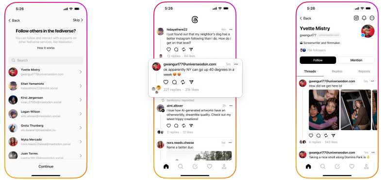 인스타그램을 넘어, 곧 Threads를 Mastodon 등의 다른 앱과 연결할 수 있게 된다고 한다.