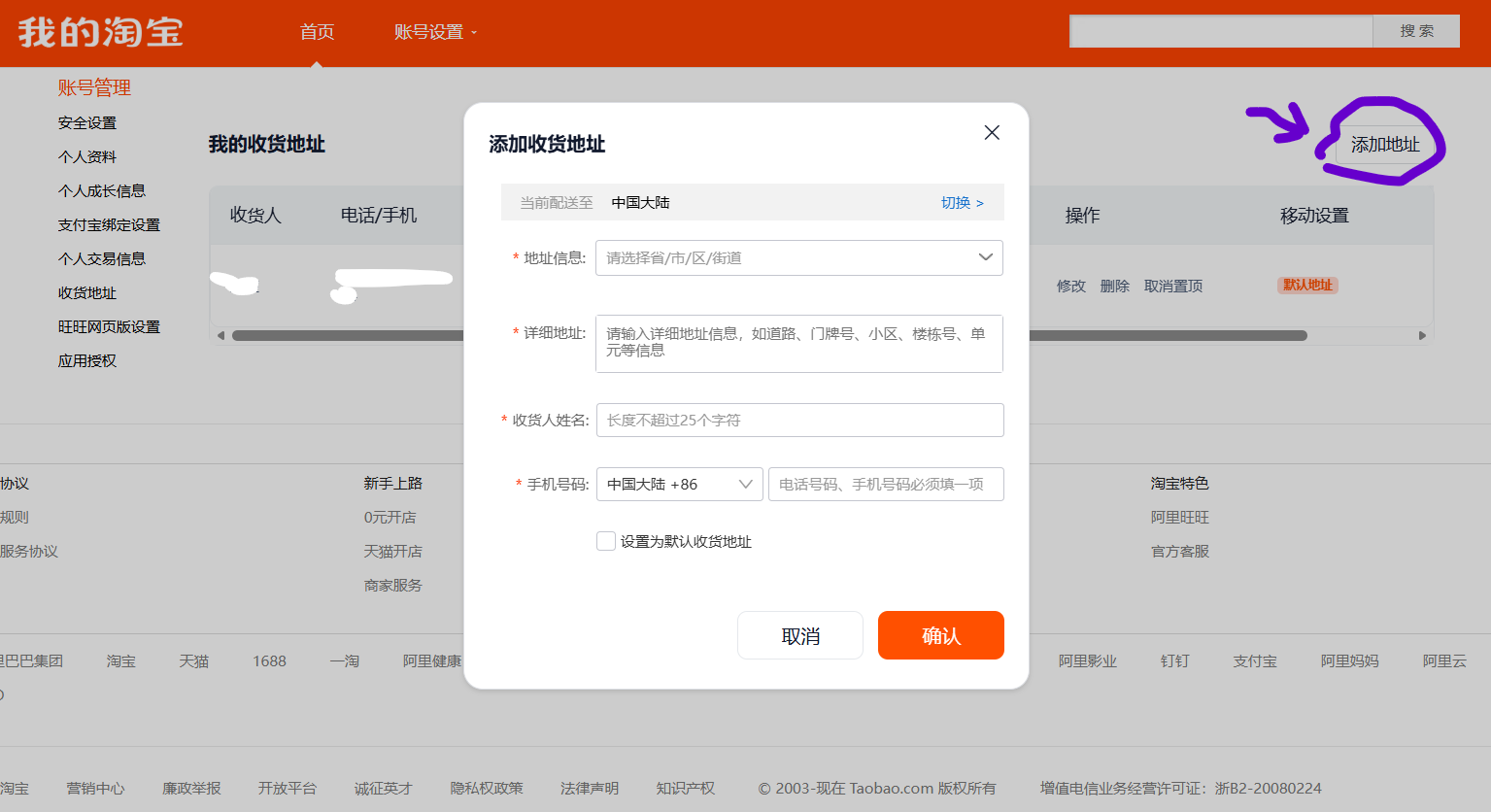 3. 타오바오 배송대행지 입력 방법